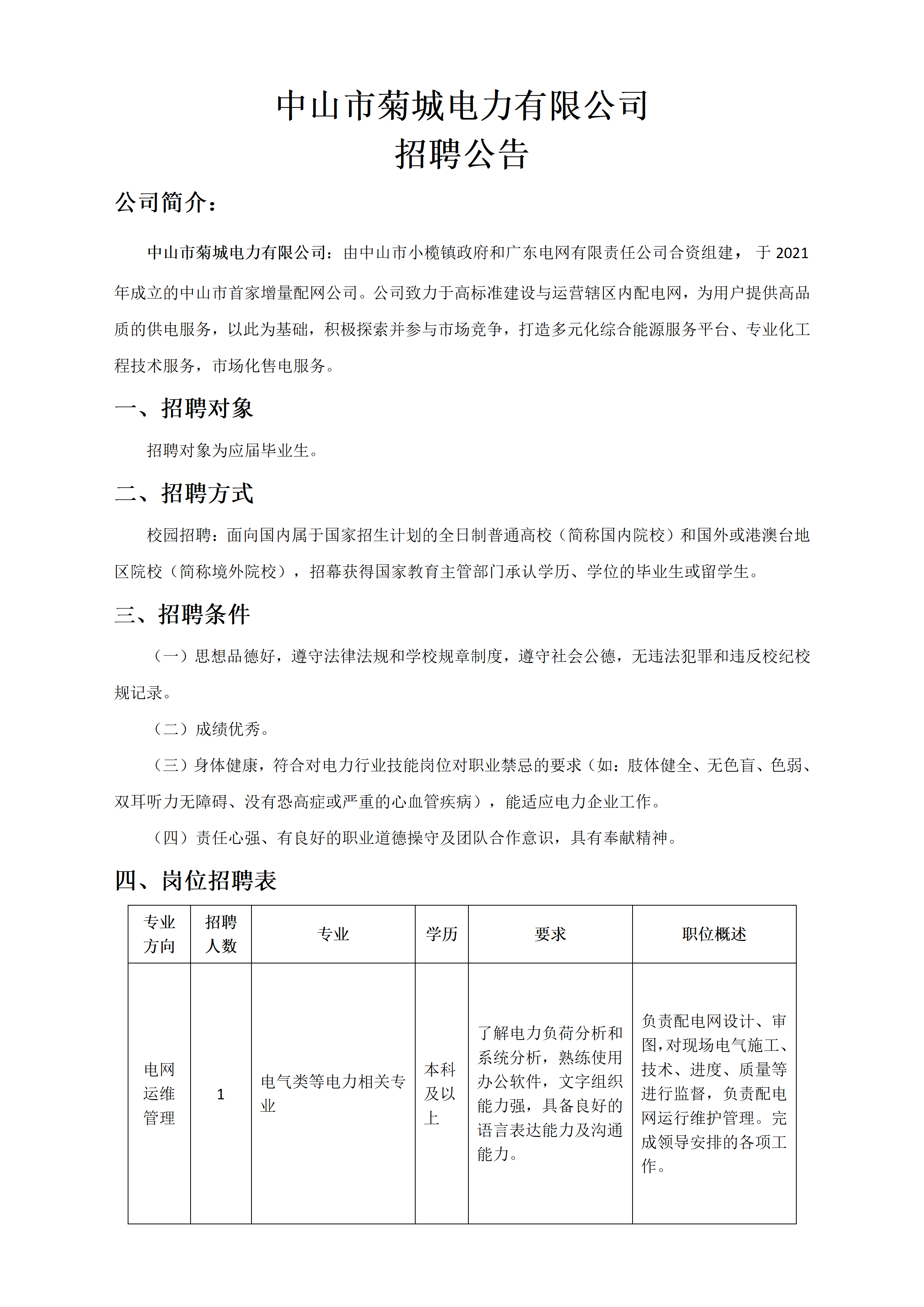 中山市菊城電力有限公司應(yīng)聘報名表.docx