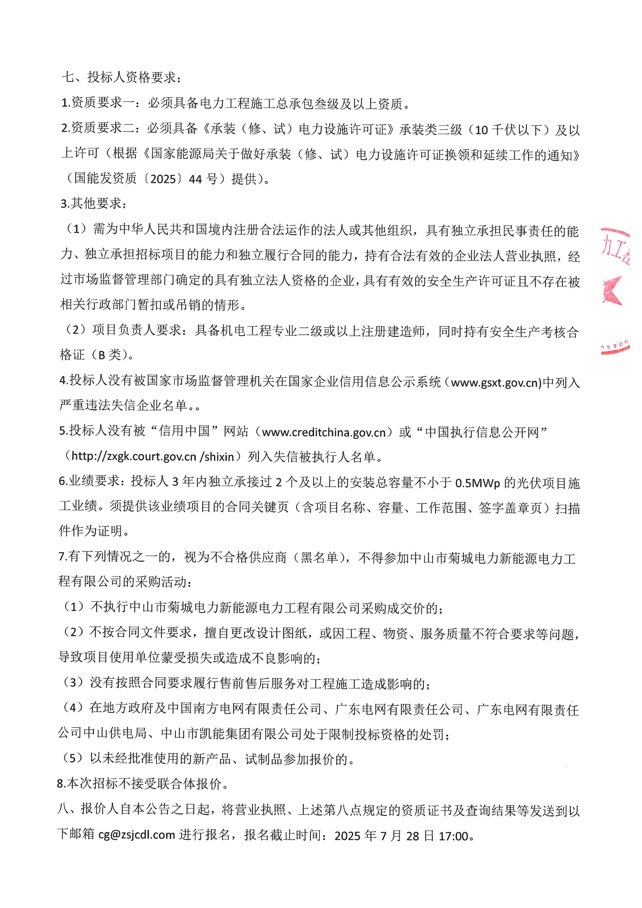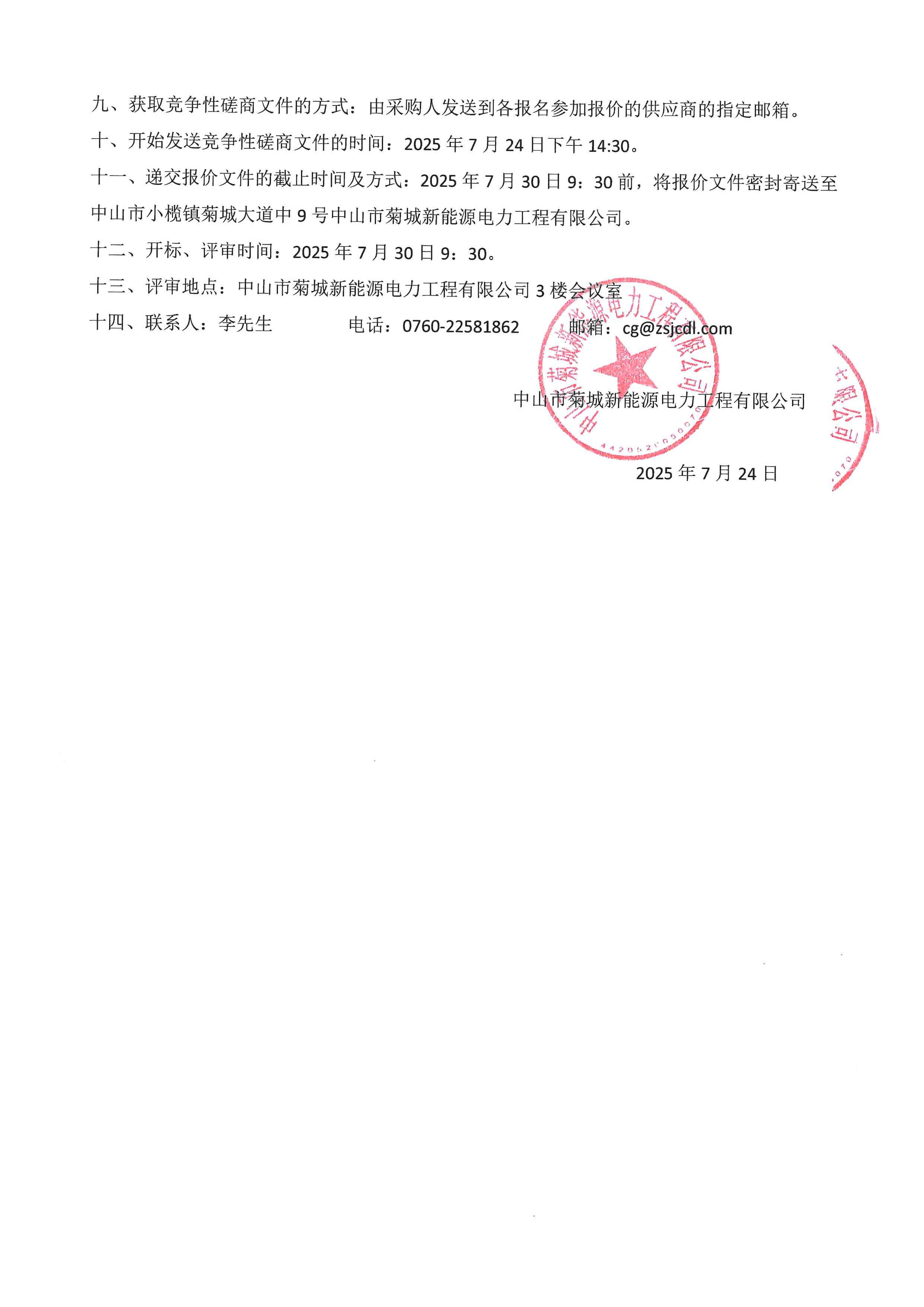 中山市菊城新能源電力工程有限公司2025年-2026年光伏項(xiàng)目施工分包框架合同采購項(xiàng)目